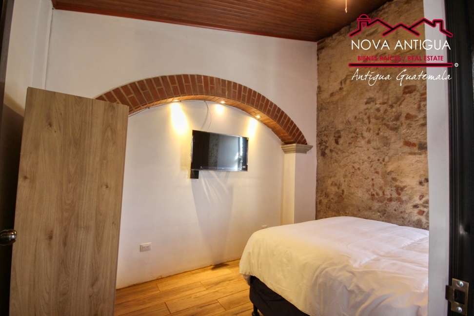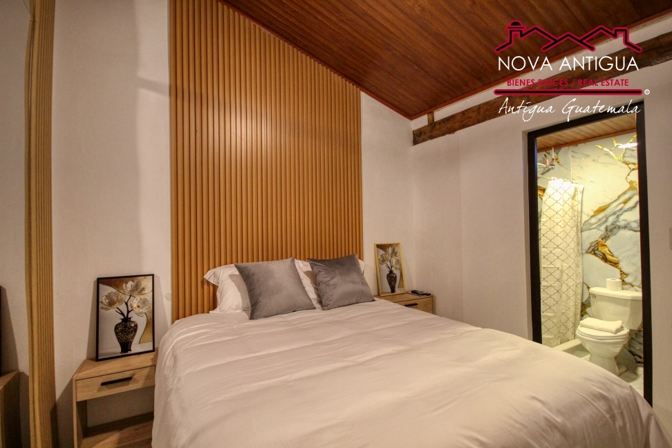 Nice apartment located 4 blocks from the central park of La Antigua Guatemala. The apartment has two levels. On the first level, there is the living room with a fireplace and dining room in the same environment, attached to the dining room is the kitchen with a dome, overhead and low cabinets, two bedrooms with […]