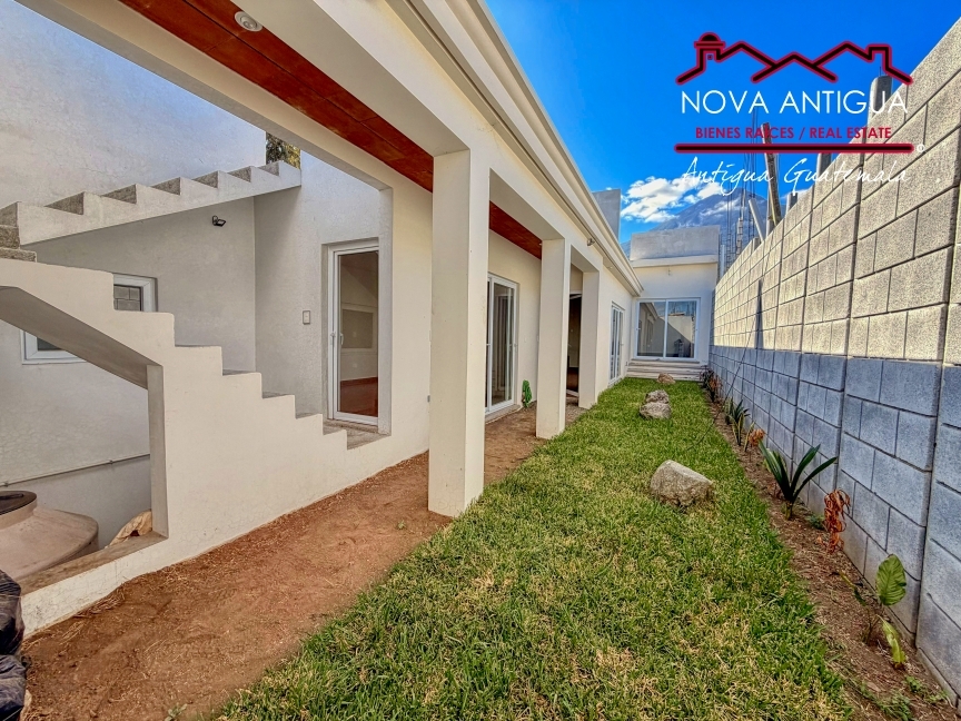 Outside, you can enjoy a terrace with a beautiful view of the three volcanoes: Agua, Fuego, and Acatenango, as well as a pleasant central garden that adds freshness and harmony to the home.
