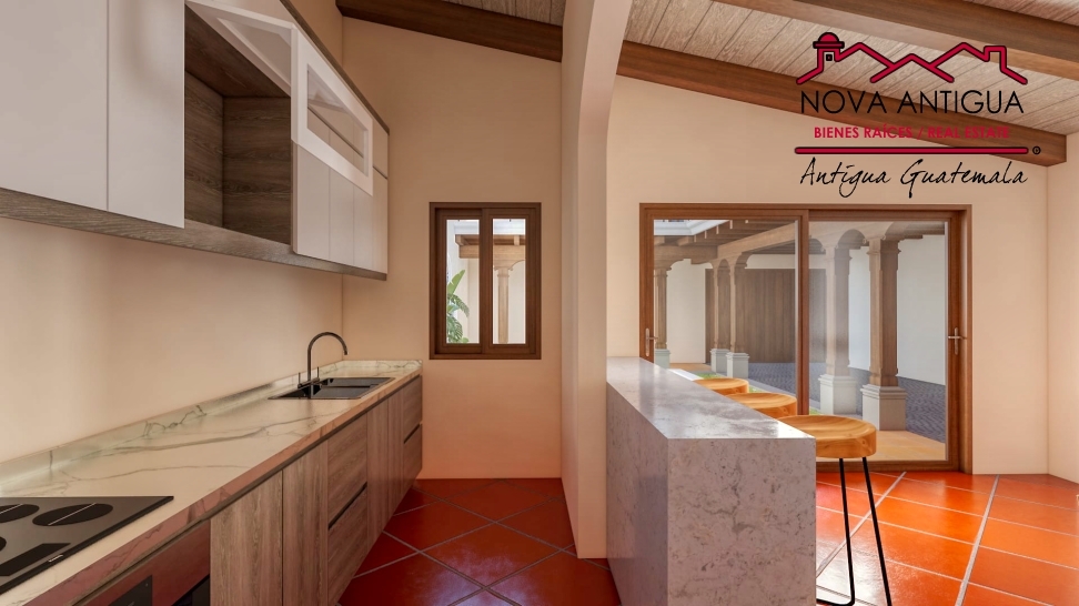 Casa de dos niveles con bellos acabados coloniales, ubicada dentro de un condominio privado con garita de seguridad, calles empedradas, plaza central y servicios subterráneos, a 5 km del Parque central de La Antigua Guatemala. La propiedad cuenta con un amplio garage para dos vehículos, y bellas ventanas que permiten la entrada de luz natural […]