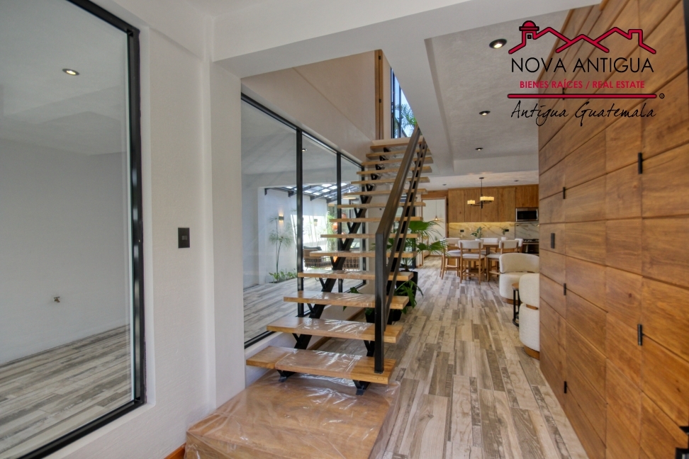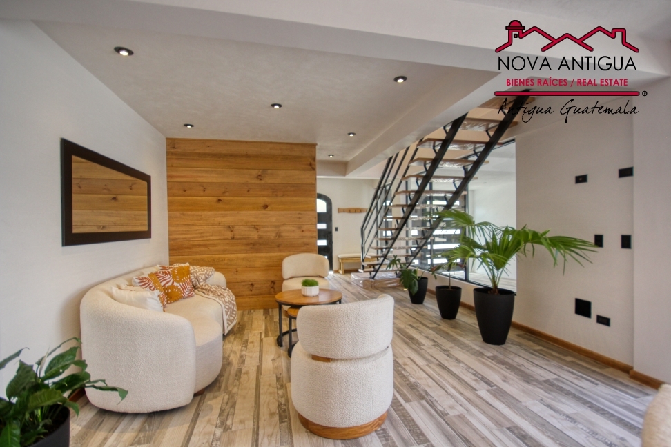 Hermosa propiedad en renta en residencial privado, ubicado en el sector de Jocotenango; el cuál cuenta con área de juegos, canchas, áreas verdes, entre otras amenidades. La casa cuenta con área de parqueo, y una pequeña área de estar en el exterior. Al adentrarse encontrará el ambiente de comedor y amplia cocina con gabinetes aéreos […]