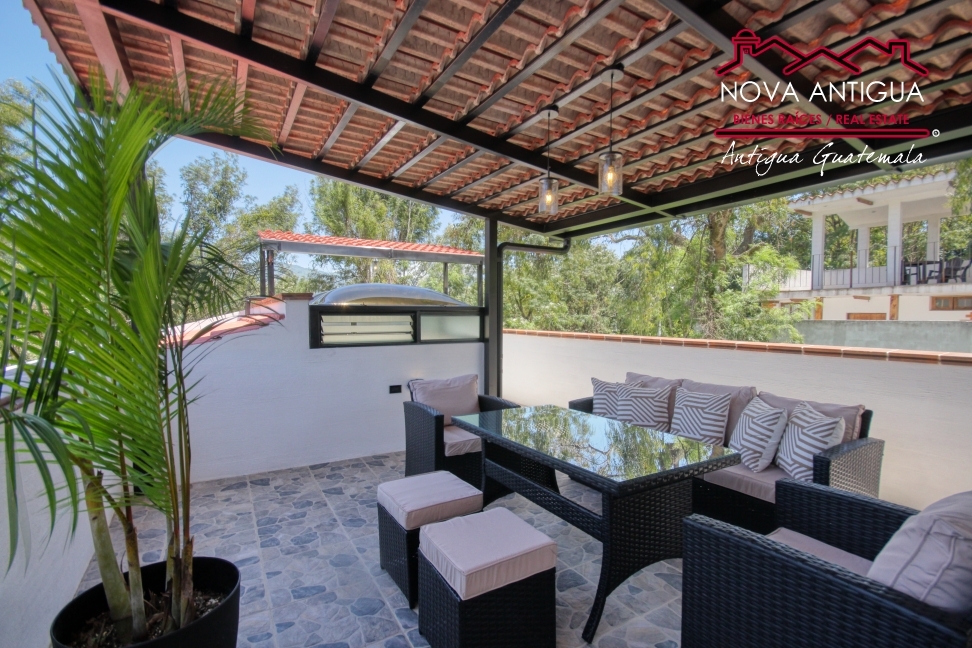 La propiedad cuenta con una amplia terraza, ideal para el entretenimiento, que incluye un área de estar y una zona de parrilla.